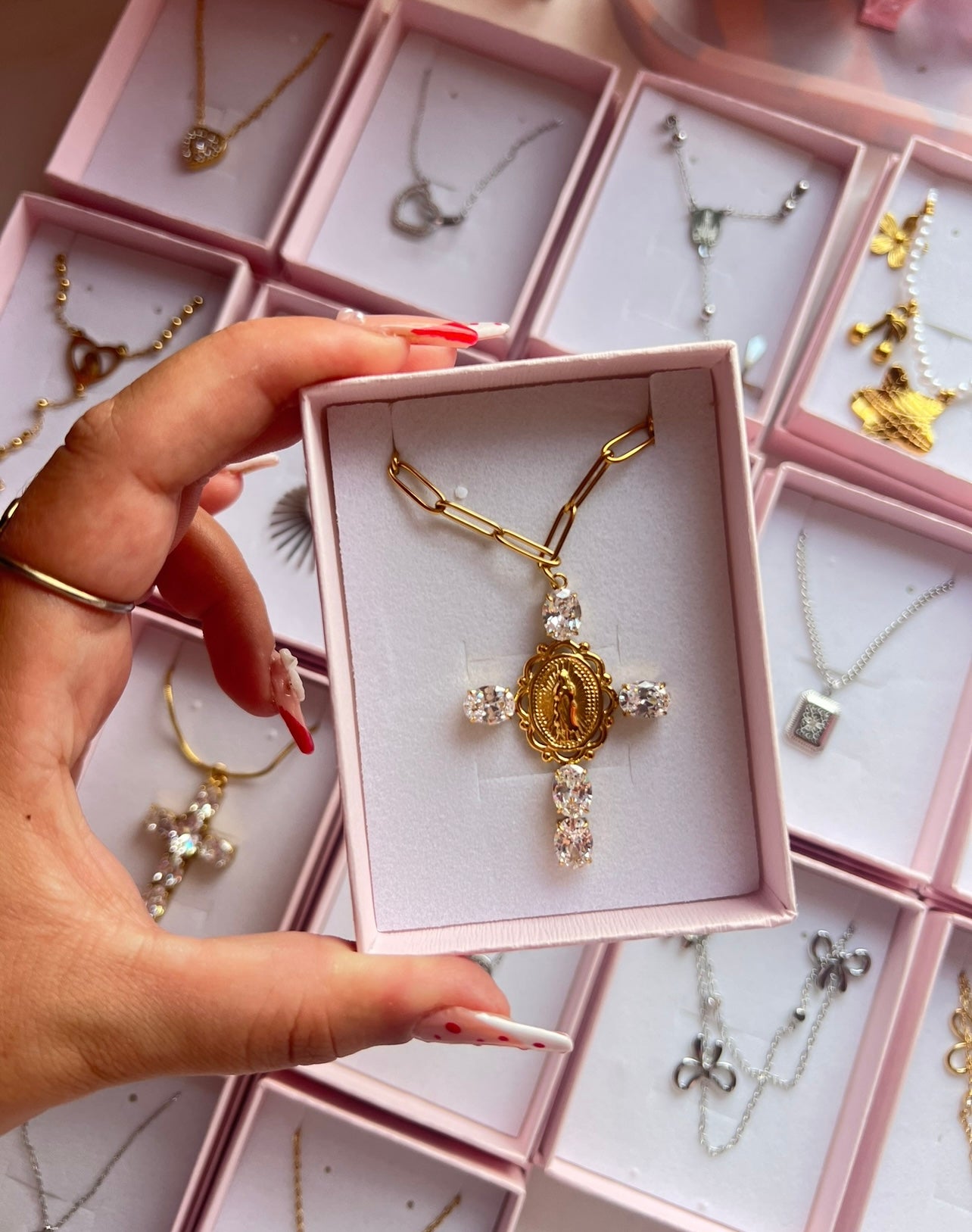Em aço inoxidável. E leva a caixinha de oferta grátis 🎁